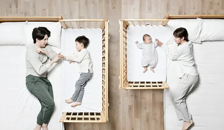 大人のベッドに固定できる添い寝専用ベビーベッドで、床板は28段階調整が可能。
